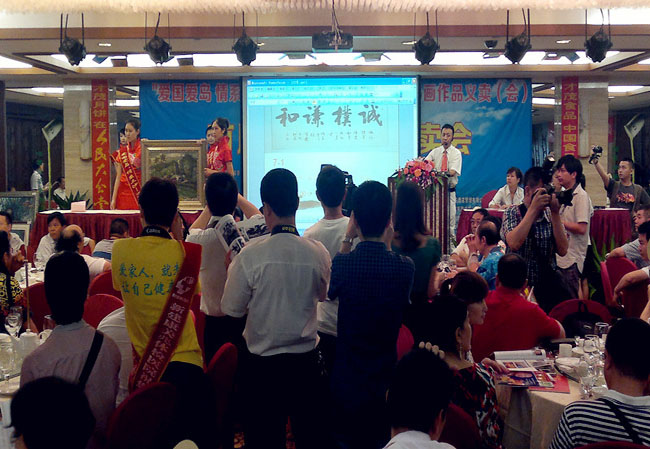 主办单位海南省经济发展联合会主席罗相龙致“义卖会开幕词”,参会有关方面代表人士作了激情演讲。所有演讲都表达了同一个声音:巩固海疆,强我国防,支援三沙市建设——鲜明地烘托出了义卖会的主题。